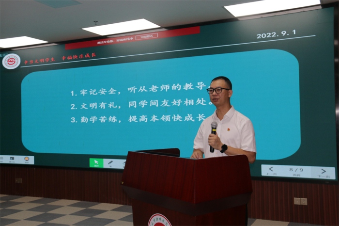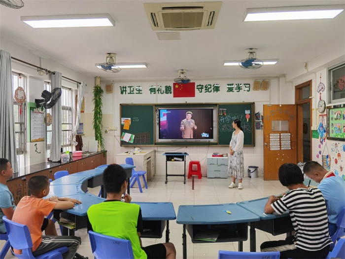 響應疫情防控不扎堆、不聚集的要求,除了六年級到綜合樓一樓階梯室舉行現場開學典禮,其他年級均在教室通過騰訊會議的形式觀看線上直播,聆聽校長、老師的教誨與寄語,為新學期蓄能助力,加滿“電量”。剛剛赴任的盧超文校長為能陪伴特殊兒童走過一段寶貴的人生路而感懷滿滿、欣喜激動,他倍加珍視與孩子們的第一次見面,為他們送上了溫暖真摯的新學期寄語。盧校說:“親愛的同學們,我也會像湯校長一樣愛你們,幫助你們幸福快樂成長的!”樸實真摯的話語,讓所有師生熱淚盈眶、感動不已。他希望同學們人人爭當文明學生,在特校幸福快樂成長,并提出三點倡議:牢記安全,聽從老師的教導;文明有禮,同學間友好相處;勤學苦練,提高本領快成長。全校學生還在教室觀看了“開學安全教育第一課”,通過學習,強化了安全意識和自我保護意識。