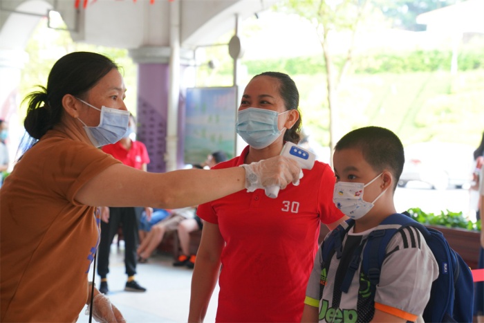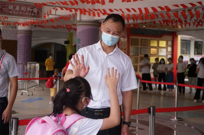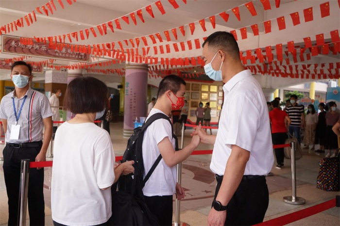 新學期,特校共有721名學生、56個教學班,新入職3位教師。按照疫情常態化防控要求,同學們佩戴口罩,在家委、老師的引領下有序排隊入校。優化的路線、緊密的交接、有序的測溫,為孩子筑起入校的一道道安全健康屏障。歡喜的見面、親切的問候、溫暖的攙扶、有力的雙手、熱情的幫助,將校園的角角落落都變成了溫情涌動的愛的海洋。