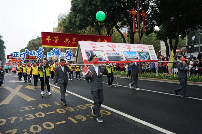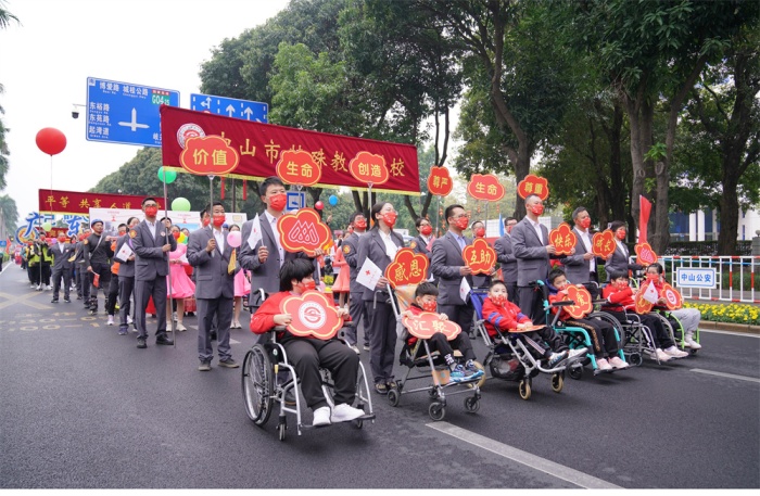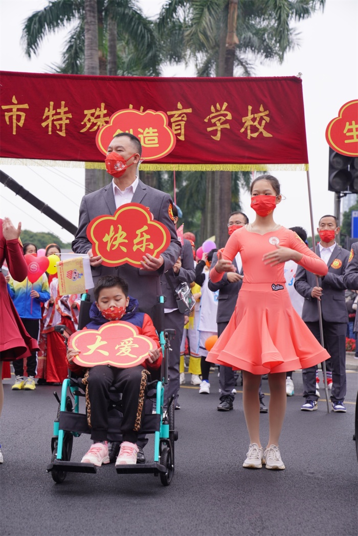 手相牽,心相連,萬(wàn)雙腳步齊向前。綿綿細(xì)雨下的興中道彩旗飄揚(yáng)、鮮花簇?fù)恚尮男臁⑷顺庇縿?dòng)。伴隨著激昂的樂曲,由師生、家長(zhǎng)代表共七十余人組成的特校方隊(duì)意氣昂揚(yáng)、精神飽滿,臉上洋溢著明媚微笑。大家身體力行感受著慈善的力量,抒發(fā)著對(duì)博愛家園的真摯熱愛,對(duì)幸福熱土的別樣深情。據(jù)了解,該校師生、家長(zhǎng)同時(shí)大規(guī)模參與萬(wàn)人行巡游,還是有史以來(lái)第一次,也是本次特校方隊(duì)的亮點(diǎn)與特色所在。勤奮向?qū)W、陽(yáng)光向上的孩子,博愛奉獻(xiàn)、奮發(fā)有為的老師,自助助人、跨越苦難的家長(zhǎng)神采奕奕地行走在巡游隊(duì)伍中,用燦爛笑容為博愛之城點(diǎn)贊,用堅(jiān)定的腳步為和美中山助力,弘揚(yáng)了友愛、互助、融合、共享的特殊教育理念,引領(lǐng)了理解、關(guān)心、尊重和愛護(hù)殘疾人、支持特殊教育發(fā)展的良好社會(huì)風(fēng)尚。