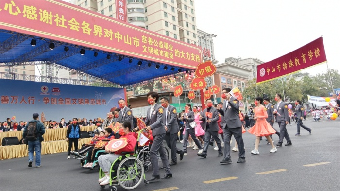 年年歲歲慈善心,歲歲年年萬(wàn)人行。從1988年到2023年,中山慈善萬(wàn)人行已走過(guò)36個(gè)年頭。經(jīng)過(guò)多年的豐厚積淀,慈善萬(wàn)人行已成為中山最具特色的城市精神文化品牌,成為中山人民津津樂道的城市名片。上善若水,飲水思源,特校師生對(duì)慈善萬(wàn)人行有著別樣深厚的情結(jié)。中山市特殊教育學(xué)校原名市紅十字會(huì)石岐啟智學(xué)校,1989年由中山市教育局和中山市紅十字會(huì)利用第二屆慈善萬(wàn)人行籌集的善款創(chuàng)建而成。可以說(shuō),34年前,中山特校在慈善萬(wàn)人行的大愛暖流中匯聚而生;34年后,一年一度的中山市慈善萬(wàn)人行再次為愛啟程,所籌集善款將再次用于中山市第二特校的籌建。所以,沒有慈善萬(wàn)人行,就沒有為殘疾孩子遮風(fēng)擋雨的特殊教育學(xué)校,這項(xiàng)活動(dòng)對(duì)特殊教育而言意義深遠(yuǎn)。