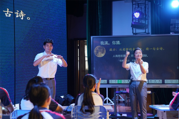 宋詞,是我國古代文學(xué)寶庫中的璀璨明珠,聽力部語文教研組組長巨翠娟老師通過課例《江城子·密州出獵》,帶領(lǐng)學(xué)生進(jìn)入優(yōu)美的詩詞殿堂。她通過富有表現(xiàn)力的詞匯學(xué)習(xí),通過慷慨激昂的視頻動畫,充分展現(xiàn)了聽障課堂的魅力與特色,展示了聽障學(xué)生手語朗讀詩詞的震撼與豪情。
