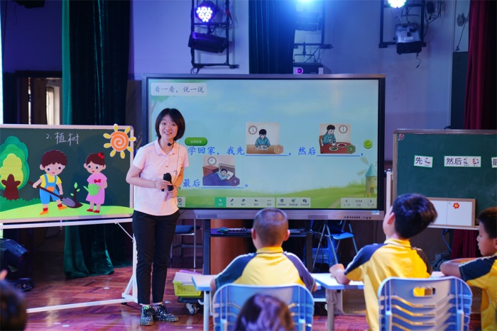 課例展示環(huán)節(jié),中山特校馮楠、徐超莉老師執(zhí)教課例《植樹》,馮老師運(yùn)用生活化的情境教學(xué)、富有感染力的語言和精彩紛呈的游戲活動,引導(dǎo)學(xué)生學(xué)習(xí)句式表達(dá),充分調(diào)動了學(xué)生的學(xué)習(xí)興趣和積極性,賦予了文本教材以生命活力,塑造了靈動高效的培智中年級課堂教學(xué)。