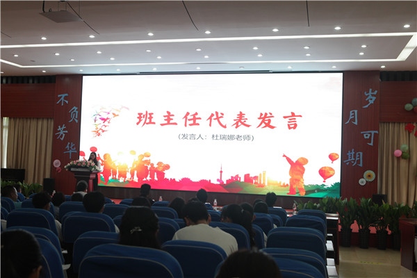 杜瑞娜老師代表畢業班班主任發言,引用電影《致我們終將逝去的青春》中的精彩獨白,分享了同學們在校園里促膝談心,運動場上頑強拼搏,考證前全力沖刺等等往事,希望同學們志存高遠,追求卓越,做追夢人、做挑戰者!