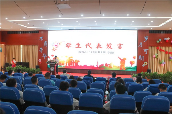 17會計升大班李強作為學生代表發言,深情回顧了自己在學校的學習與成長,從稚嫩逐漸走向成熟,多彩而又充實,并代表2020屆畢業生向母校和老師表達了感謝與祝愿。