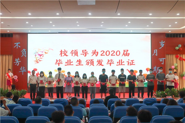 龍衛平校長做了《珍惜韶華,不負青春》的畢業致辭,深情回顧了同學們在一職校生活、學習的點點滴滴,點贊同學們在多姿多彩的一職校里獲取了知識、錘煉了品格、增長了能力、提高了素質,實現了人生的轉變,多項賽事實現了零的突破,為學校爭得了榮譽!他通過列舉黨和國家扎實開展的新冠肺炎疫情防控工作、同學們積極投身各種防疫工作體現的責任擔當等實例,告誡同學們在大事難事面前要更加懂得自律,在逆境困境面前要更加懂得自強,在危機危難面前要更加懂得自育。他希望同學們要時刻牢記“艱苦奮斗,自強不息”的校訓精神,要擁有感恩之心、要愛黨愛國、愛校愛家、愛師愛友,做有志向的國家青年;要擁有夢想,要自尊自律、自勉自強、自省自育。