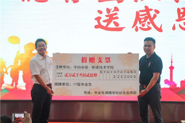 班級代表為德育團隊、班主任送感恩花,并舉行了畢業捐款捐贈儀式。校領導為優秀畢業生頒獎,校領導為2017級同學頒發畢業證。同學們手拿畢業證和校長、班主任、任課老師合影留念,定格人生這一幸福時刻,把青春最美的微笑留在了一職畢業典禮舞臺上。