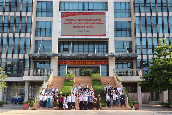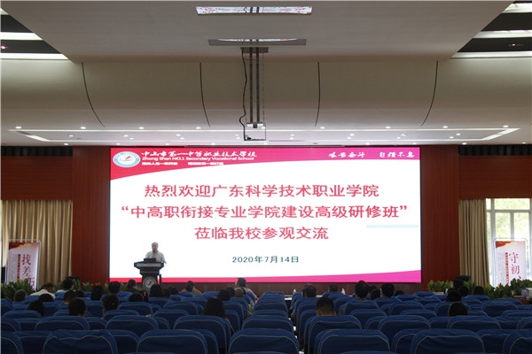 7月 14日下午,在廣東科學技術職業學院繼續教育學院院長袁曉斌帶領下,繼續教育學院辦公室主任李穎玲,成教部副主任莊玉紅、胡軍,中高職銜接專業學院建設高級研修班全體學員等一行50余人到中山一職考察交流,中山一職校領導、學部部長、各專業負責人、產學研基地負責老師、創客一條街負責老師陪同參觀并參加座談。