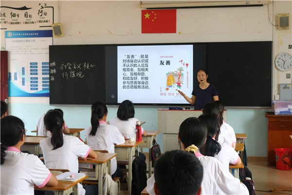 在班會課上,班主任們從理論實際出發,對社會主義核心價值觀基本內容進行圖文并茂地生動講解,深刻闡釋社會主義核心價值觀的內涵與意義,幫助學生熟記于心,踐之于行。班主任們還圍繞“愛國、敬業、誠信、友善”,結合當前疫情期間不斷涌現的一件件感人至深的“抗疫”事跡,從個人層面加深學生對社會主義核心價值觀的理解,引導學生珍愛生命、敬畏生命,凝聚社會正能量,培養愛國愛校、誠實守信,愛崗敬業、友愛互助的正確價值觀。在互動討論環節,同學們踴躍上臺背誦社會主義核心價值觀的內容,積極分享身邊踐行社會主義核心價值觀的典型事例,在這些鮮活的人物事跡中學習借鑒,暢談感受與收獲。班主任們還通過搶答測試,幫助學生進一步鞏固學習內容。