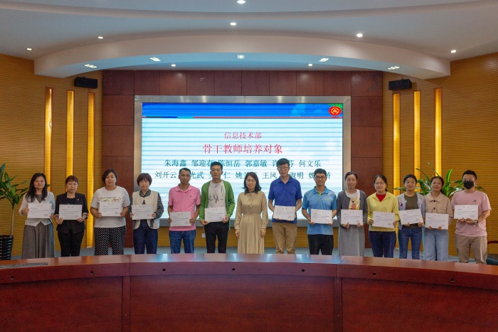 為深入貫徹《中共中央國務院關于全面深化新時代教師隊伍建設改革的意見》精神,進一步落實《教育部 財政部關于實施職業院校教師素質提高計劃(2021—2025年)的通知》等文件要求,充分發揮優秀教師的示范、引領、輻射作用,切實推進教師隊伍專業化發展,中山中專啟動了新一輪的名教師系列培養工作,并于2022年5月17日下午,在辦公樓會議廳,舉行了新一輪(2022-2024)名教師系列授牌儀式。全體黨委委員出席儀式,新一輪名教師系列成員及各教學機構負責人參加儀式。儀式由質控處主任俞錦梅主持。