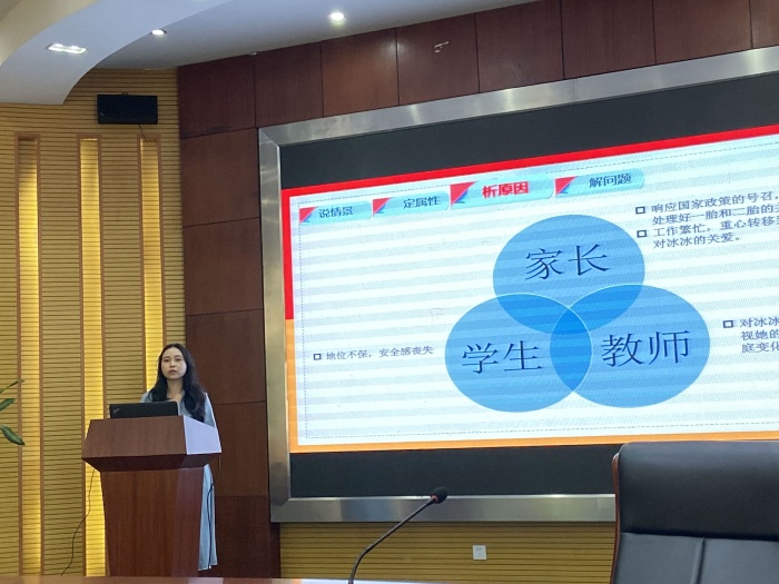 在情景模擬處置比賽中,選手們根據(jù)抽到的情景快速“入戲”,在“自導(dǎo)”“自編”“自演”的過程中進(jìn)行情景設(shè)計(jì)、原因分析、處理策略、總結(jié)反思等環(huán)節(jié)的闡述,并接受評委的提問。經(jīng)過一輪緊張角逐,選手們的育人智慧、心理素質(zhì)、知識儲備、現(xiàn)場應(yīng)對等綜合素養(yǎng)得到全面展示。