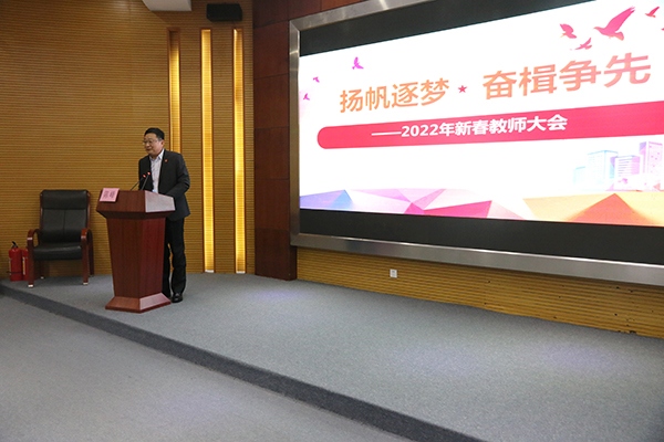 “卻顧所來徑,蒼蒼橫翠微。”他總結到,過去所有的成績來之不易,所有的榮光都是對信仰的堅持、對理想信念的堅定和持之不懈的奮斗。他寄望2022年踵事增華,奮楫爭先的美好愿景,要求大家以扎實工作傾情貢獻,以優異的成績迎接黨的二十大勝利召開。他明確中山中專,圍繞“內修外聯、行穩致遠”準則,明晰“和”“合”兩條主線,抓實“干部管理、教師管理、學生管理”三個基點,突出“黨的建設、學校治理、雙高建設、專業建設”四個重點,實現“教學成績、技能競賽、教育科研、智能校園、工程建設”五項突破,扎實推進“黨建工程、師資建設工程、治理水平進取工程、教育教學質量進取工程、學生管理水平進取工程、教育教學進取工程”六項中心工作,實現學校工作新的騰飛和跨越。