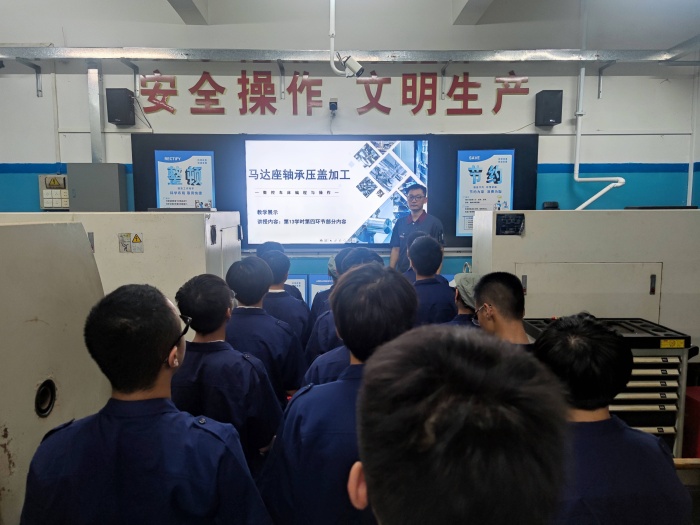 比賽共設中等職業教育組和高等職業教育組兩個比賽組別,學校教學團隊分別針對中等職業教育組下設的三個不同組別進行全面準備。針對公共基礎課程,顏紅艷、朱賽明、韓坤教學團隊通過長期探索和創新,拓展教學內容的廣度和深度,完成《啦啦操第二風格創編》,為體育教學增添亮點。針對中職專業技能課程(一組),林國鴻、張文瓈、朱重陽、陳鈞教學團隊聚焦工業機器人領域,優化教學過程,詳細探討《工業機器人風扇燈罩涂膠軌跡操作與應用》;目前,短視頻、直播是充滿活力的傳播潮流,是數字時代下重要的新媒體形態,蘇彩連、彭鳳瓊、張征、王婉娜教學團隊研究了《非遺掐絲琺瑯短視頻與直播》教學,體現產業發展新趨勢。針對中職專業技能課程(二組),張丹丹、王朋、鄧應強、劉彪教學團隊以減速器為典型案例,對《減速器從動軸的測繪與加工》的教學模式和方法進行探討研究;趙芳、史國濤、于陽、鐘煒源教學團隊則是圍繞《馬達座軸承壓蓋加工》進行教學,致力于優化教學過程,突出重難點的教學策略。