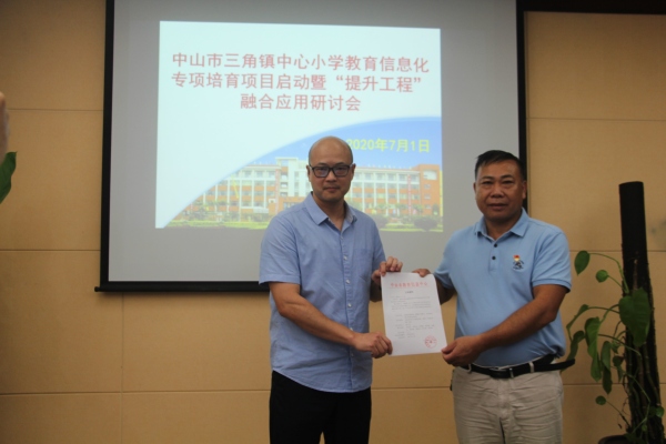 在這陽光燦爛的季節里,在各級專家們的悉心指導下,經過一段時間的積極籌備,由中山市三角鎮中心小學教導主任陳平芳主任主持的項目《借助智慧課堂,提高小學數學、英語課堂練習的有效性研究》啟動儀式于2020年7月1日下午3點在中山市教育信息中心召開。