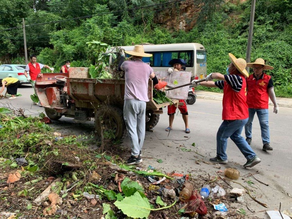 同志們不怕苦,不怕累,團結協作,奮勇當先,充分發揮了黨員志愿者先鋒模范的作用。鎮領導以身作則,剛放下鐵鏟又接過鋤頭,仿佛有使不完的勁。亂建棚舍違規占地,腐化倒塌,同志們徒手清理,顧不上草叢和棚舍里的螞蟻,心里只有一個念頭,盡快把它消滅。而清理樹枝和鏟除路邊雜草的同志們更起勁,一大堆的干枝斷木在他們的齊心協力下很快被搬上了垃圾車。清理路邊雜草的同志最辛苦,男同志揮舞鋤頭、砍刀,先鏟除長得茁壯的野菜,再把雜物垃圾清理到一邊;女同志索性徒手把大件垃圾搬上垃圾車。整治現場熱火朝天,同志們的衣服濕透了,汗水直流眼眶,擦一擦,抹一抹,沒當回事;石子沙土掉進鞋子里,脫一脫,揚一揚,繼續奮戰。經過一個上午的艱苦勞動,被清理的衛生黑點煥然一新,重新恢復到整潔的面貌。