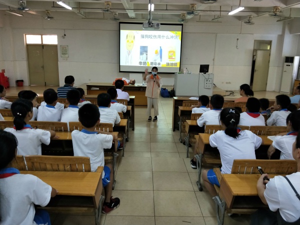 為傳播“人人學急救,急救為人人”的紅十字救護理念,提高應急救護知識的普及率,增強學校師生面對突發事件和意外傷害的應急意識,讓師生了解和學習應急救護的基本知識,提高自救和互救能力,7月6日下午,三角小學邀請中山市紅十字會黃美琪老師到校開展了應急救護知識培訓講座,講授紅十字會應急救護知識與技能。三角小學部分行政和全體五年級師生參加了此次培訓。