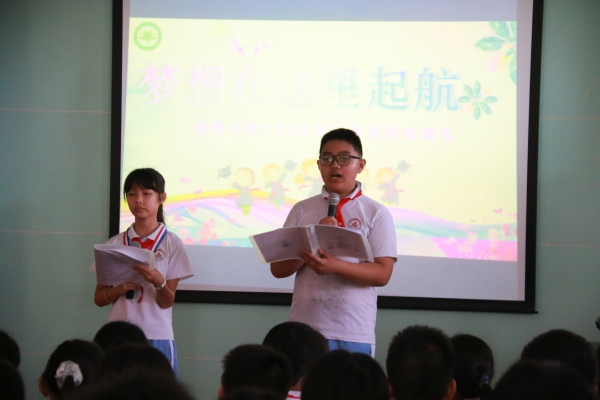 此次畢業典禮主題是《“疫”起出發,夢想起航》,共分為三個篇章。第一個篇章是《難忘母校》。“讓我魂牽夢繞的,不止六年相守,讓我拳拳思念的,不止你的教誨”。同學們深情演唱了一首《光明改編版<成都>》,由此拉開這次畢業典禮的序幕,同學們用歌聲表達對6年小學生活的依依不舍。接著,視頻播放了一張張久遠又珍貴的照片喚起了同學們甜蜜的回憶,一個個溫馨又難忘的瞬間見證了同學們6年的成長之路。然后,黃滿華校長向同學們發表了真摯的寄語:他勉勵同學們要要感恩感動,心懷祖國;要心中有夢,胸懷大志;要珍愛生命,好好做人;要光耀美德,明理修身。第二個篇章是《難忘恩師》。這個環節有向老師獻禮、教師寄語、畢業生代表發言以及畢業生代表展示節目等環節。第三篇章是《夢想起航》。全體六年級畢業生起立齊唱《聽我說謝謝你》,同學們在淚水中向老師和學校表達了的崇高的敬意和滿滿的感恩之情。最后,全體師生分別留下了珍貴又難忘的大合照。