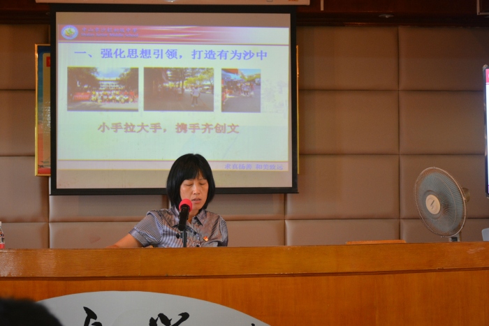 德育處的范立宇副校長以“打造沙中三和特色”為題,匯報了德育線的工作,班主任工作和主題教育活動是重中之重。教導處的何健鏗主任則從“特殊時期開展特殊的教學、特殊時期的教研、特殊時期取得的教學教研成績”三個方面進行匯報??倓仗庩愊楹橹魅螐乃膫€方面闡述了防疫期間返校復學所做的校園的衛生清潔和消毒防疫工作。