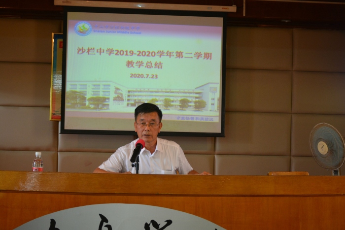 7月23日,沙欄中學召開2019—2020下學期學校工作總結會議,由學校校長梁炳華主持。梁校長首先和大家回顧了本學期的工作表現。接著,由學校各部門負責人進行工作匯報。