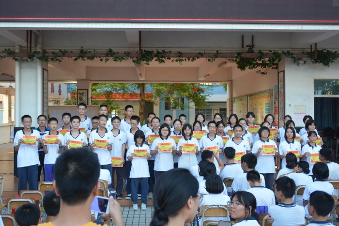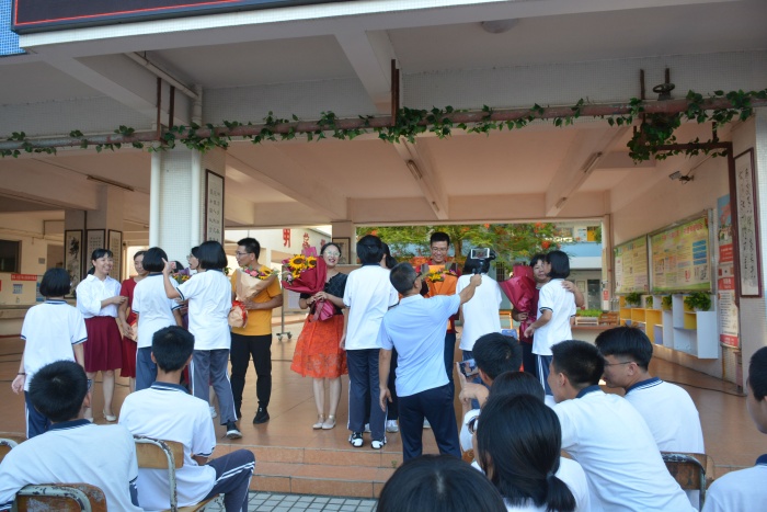 學(xué)生代表將一束束鮮花送到老師們手上。接著,楊級長宣讀獲得2020屆優(yōu)秀畢業(yè)生稱號的學(xué)生名單,號召全體學(xué)生向他們學(xué)習(xí)。校長梁炳華為優(yōu)秀畢業(yè)生頒發(fā)了獎(jiǎng)狀。