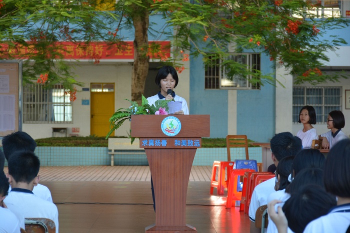 隨即,三1班的家長代表羅先生對學(xué)校領(lǐng)導(dǎo)和老師們致以崇敬的謝意,鼓勵(lì)學(xué)生們努力學(xué)習(xí),回報(bào)社會。初三教師代表龍卓林老師發(fā)表講話,他從初三師生情誼說起,引用唐詩宋詞暢敘了三年來師生同甘共苦感人肺腑的往事和深厚友誼,各班同學(xué)紛紛起立,向老師們道聲“老師您辛苦了!”初三優(yōu)秀畢業(yè)生代表羅惠蘭同學(xué)發(fā)表了講話,她向辛勤耕耘、默默奉獻(xiàn)了三年的老師們表示最崇高的敬意,同時(shí)也表示,將在母校形成的良好習(xí)慣帶到將來的學(xué)習(xí)和工作中去,為母校添光彩。