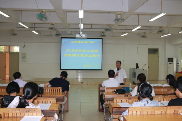 為進(jìn)一步加強(qiáng)師德師風(fēng)建設(shè),弘揚(yáng)高尚師德,樹立優(yōu)良師風(fēng), 7月18日上午,三角鎮(zhèn)三角小學(xué)在一樓階梯室舉行師德師風(fēng)教育主題會(huì)。會(huì)議由學(xué)校副校長(zhǎng)王輝主持。