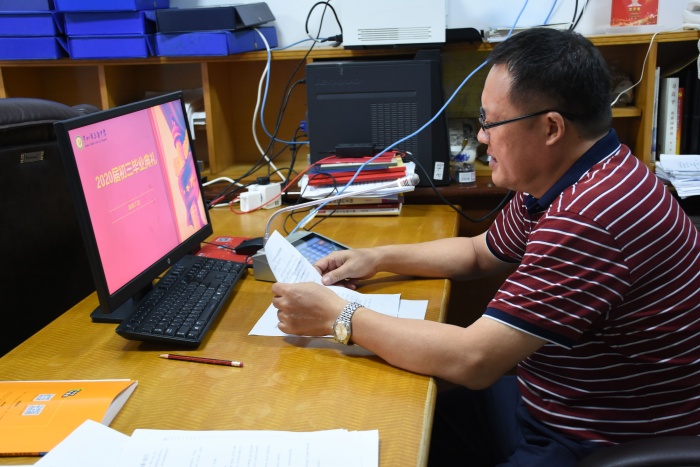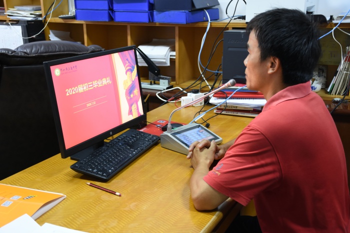 首先,初三級長何志楊老師代表全體初三教師給2020屆畢業(yè)生送上畢業(yè)寄語和祝福,希望同學們中考取得出色的成績,順利進入理想的高中或中專。他還通知學生23日網(wǎng)上召開釘釘直播家長會,以指導同學們報考學校。