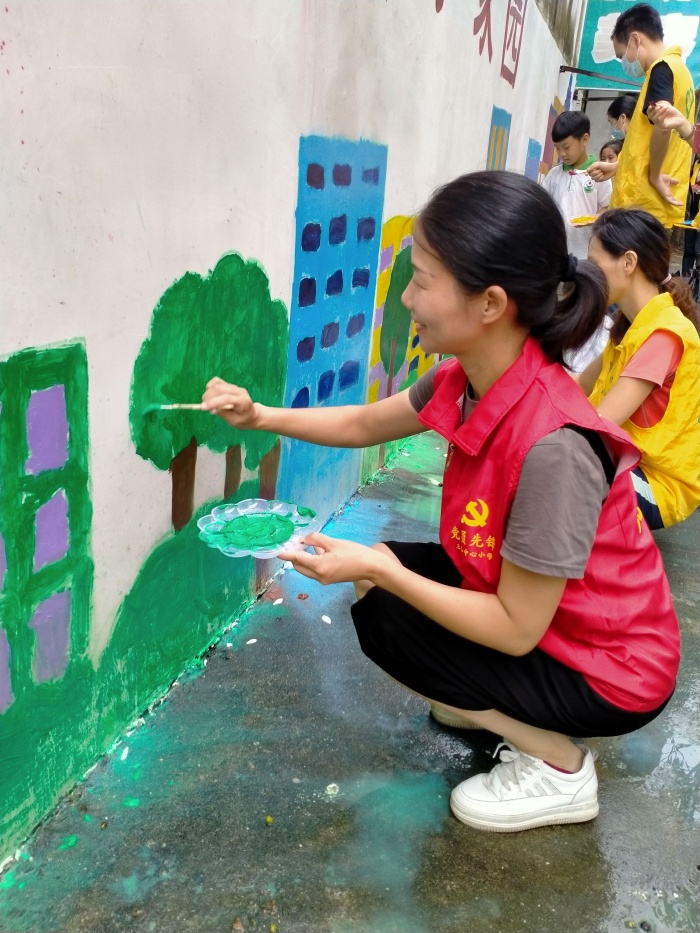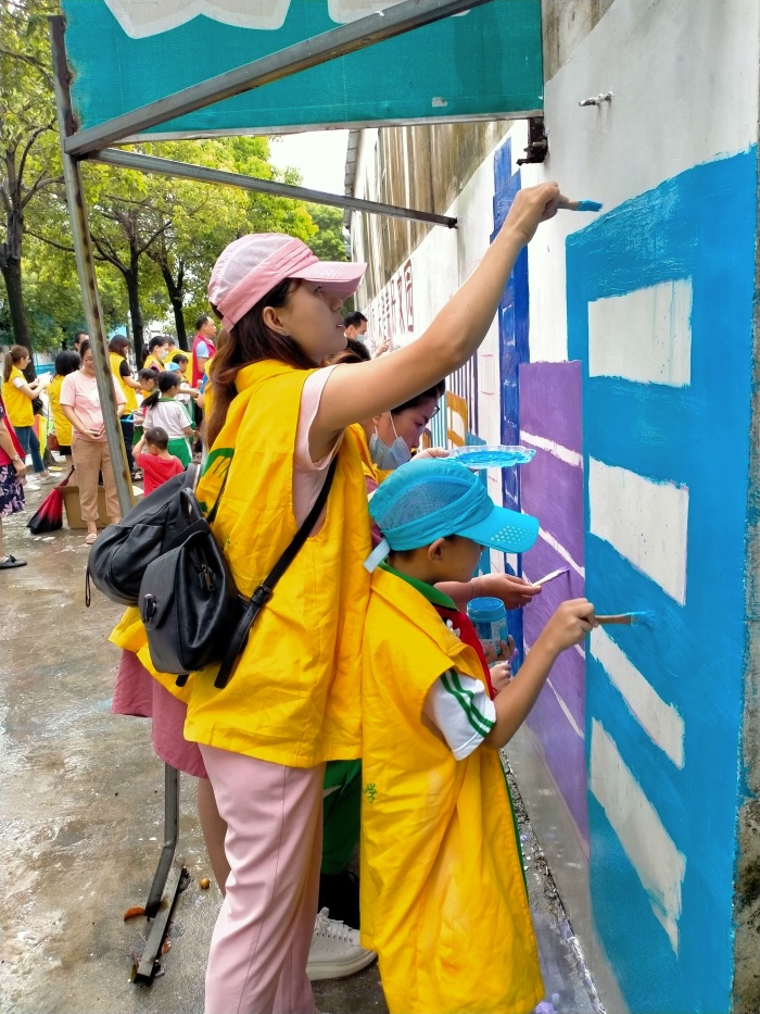 為助力全國文明城市創建工作,全力打好“創文”攻堅戰,以實際行動引導更多師生參與到文明城市創建行動中來,三角鎮中心小學于8月2日早上,組織學校黨群教師和親子義工共同開展“手繪美麗鄉村 助力文明創建”彩色墻繪志愿服務,通過“小手拉大手,全家總動員”,讓師生與家長積極參與到文明城市的創建熱潮中來。