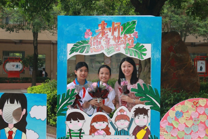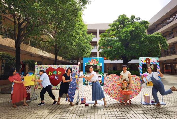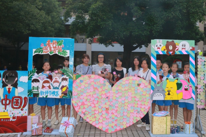 9月8日-10日,三角小學開展了“心心相印、紙短情長、心花怒放、青春永駐”等一系列主題活動,學生們用彩色顏料在KT板上按出小愛心,表達了對老師的感恩愛戴之情;學生們在彩色心形便利貼上寫下對老師們說的心底話、祝福語,表達了對老師的尊敬感激之情;有些學生向老師獻上了玫瑰花,還有部分學生自發地向老師敬茶,表達了對老師的關心之情。活動期間,老師們紛紛在制作精美的慶祝展板前合影留念,成為了校園里一道最靚麗的風景線。桃李不言,下自成蹊。同學們一句簡單的話語,一張簡單的卡片,用實際行動向老師們表達由衷的敬意,讓老師們度過了一個難忘又愉快的教師節。