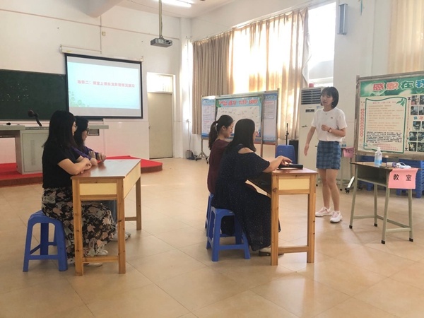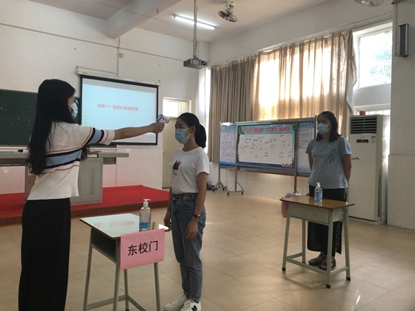 此次疫情防控演練由黃滿華校長主持召開。首先,黃長強調現(xiàn)階段仍為疫情防控階段,每一位班主任與老師都需要關注學生身體情況,因此他強調第一點每班必須準備好應急箱在教室以備不時之需。接著,疫情防控演練正式在階梯室開始。此次防控演練以進入校門與教室兩個情景為主。校門時疫情防控的重要關卡,因此需要重點把控。林小鳳、梁銳霞、揭婷婷、葉佳娜等老師分別扮演學生與校門值日教師和校醫(yī),在學生出現(xiàn)發(fā)熱癥狀時,值日教師及時檢測出來,并通知行政主任,行政主任則及時帶領學生來到校醫(yī)室進行檢測觀察,做到第一時間隔離。