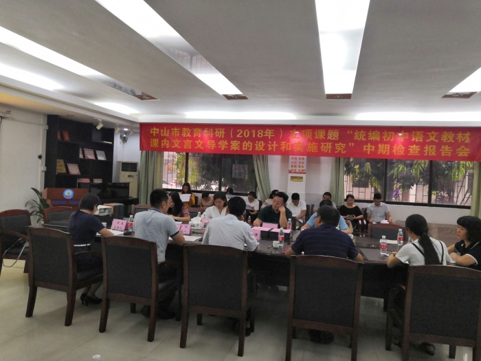 9月15日,沙欄中學教導處在該校接待室召開了中山市教育科研立項課題“統編初中語文教材課內文言文導學案的設計和實施研究”中期檢查報告會。參加會議的人員有:中山市教研室張寶華老師、橫欄中學劉凌云副校長、溪角中學鄧仲萍主任、三角鎮教育事務指導中心梁文老師、沙欄中學校長梁炳華、副校長史漢軍、以及語文課題組全體成員。會議由沙欄中學教導處副主任陳述陀主持。
