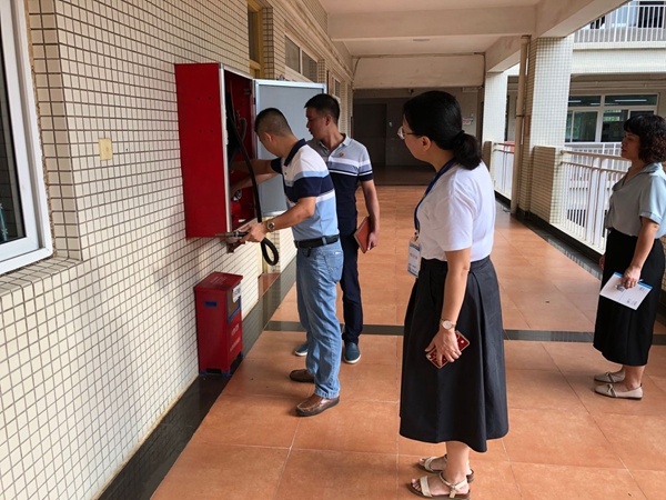 在黃滿華校長的帶領下,全體行政首先對教室、教師辦公室、功能室、校園配電間、消防設施、操場及附屬設施等進行了橫向到邊、縱向到底的地毯式安全排查。排查中,黃校長提出,各班級、辦公室等要嚴把安全關,做到人走斷電,學校用火用電一定要符合消防安全要求,消除安全隱患。隨后,對于已排查出的安全隱患,高度重視并當即處理,對無法立馬處理的安全問題,詳細記錄并及時反饋到總務處報備維修。接著,仔細查看校園門衛室及安保器材設施、校園周邊環境等,全力整合人防、物防力量,提升校園安全指數,保障師生安全。