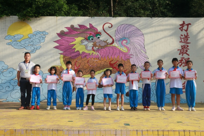 活動最后,由陳見洪校長和王輝副校長為參加學校四年級作文比賽獲獎的同學及學校九月份墻板評比獲獎的班級頒獎。陳校長勉勵代表參加鎮比賽的同學們,希望他們再接再厲,取得佳績。