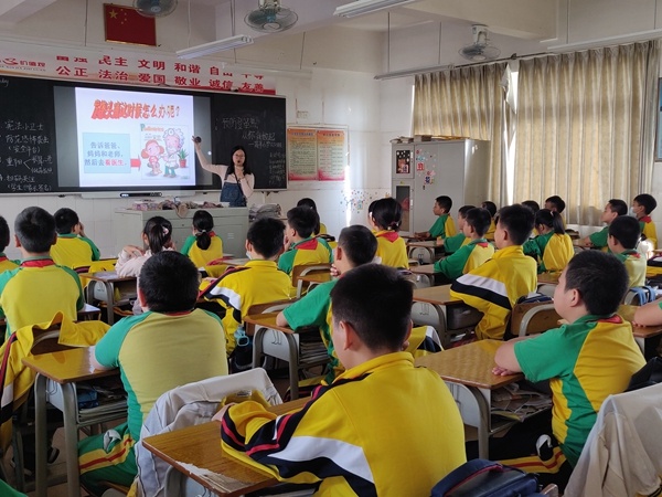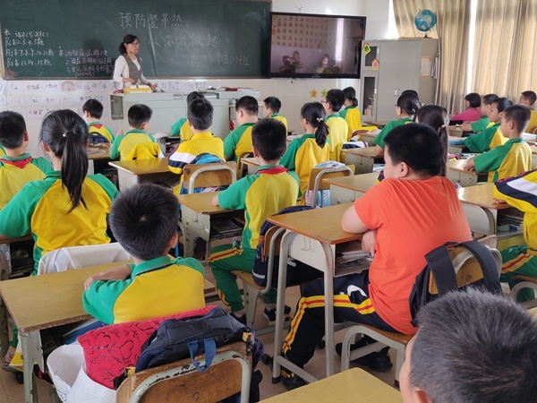 班會課上,班主任利用多媒體課件,通過展示圖片與文字、播放視頻,創設情境與學生互動交流、競答等多種方式,向同學們詳細講解了“什么是登革熱”,“怎么預防登革熱”等基本知識。重點教會同學們要注意個人衛生,野外活動時要噴灑防蚊驅蚊藥,預防蚊子叮咬;身體出現不舒服要馬上告訴家長、老師等等。