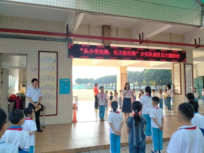 主題隊會。13日早上,利用早讀課時間,全校開展“從小學先鋒,長大做先鋒”主題隊會,通過觀看視頻《入隊第一課》、學習少先隊基本知識、唱隊歌、學敬隊禮等系列活動,讓同學們感受到作為一名少先隊員的自豪!