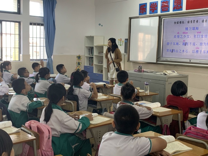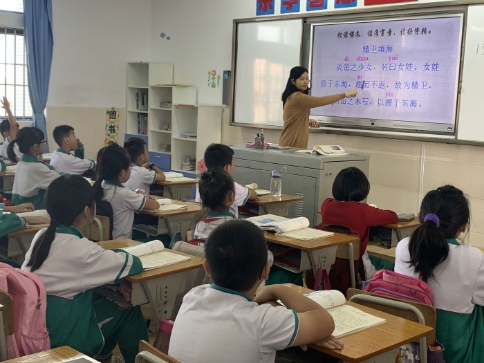 本次骨干教師示范課活動是余燕老師執教,內容是四年級語文上冊《精衛填海》。在本節課中,余老師教學流程環環相扣、教學技巧嫻熟自然、課堂氣氛和諧融洽,充分展現出語文課堂的精彩,使聽課教師們從中得到了很好的啟示,紛紛表示受益匪淺。在教學片段中,余老師引導學生充分利用注釋及生活經驗,引導學生通過聯系上下文理解文言文,并引導學生在感悟神話故事的神奇性過程中,通過對課文內容的解讀,從而發現神話故事的特點——神奇。