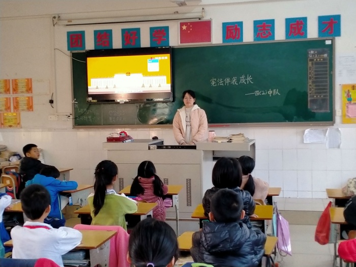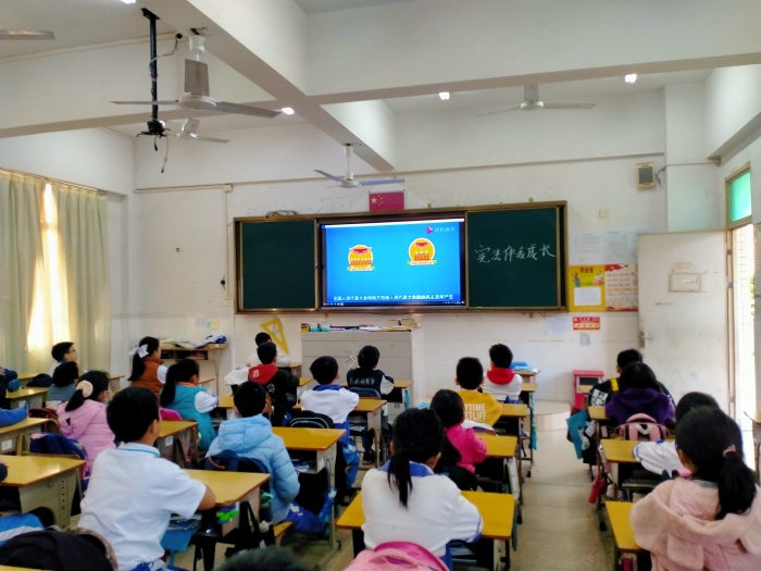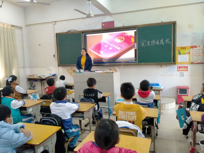 12.4國(guó)家憲法日, 光明小學(xué)開展“晨讀憲法“和“憲法伴我成長(zhǎng)”主題班會(huì)。班會(huì)上,班主任利用自己精心制作的課件,生動(dòng)有趣的動(dòng)畫,向同學(xué)們進(jìn)行了形象的講解:2014年11月1日第十二屆全國(guó)人民代表大會(huì)常務(wù)委員會(huì)第十一次會(huì)議通過(guò)決議,將12月4日設(shè)立為國(guó)家憲法日。憲法是國(guó)家的根本大法,它規(guī)定了國(guó)家的根本制度和根本任務(wù),是人們行為的基本法律準(zhǔn)則。班主任們用通俗易懂的話語(yǔ),向?qū)W生介紹學(xué)習(xí)憲法的重要意義。