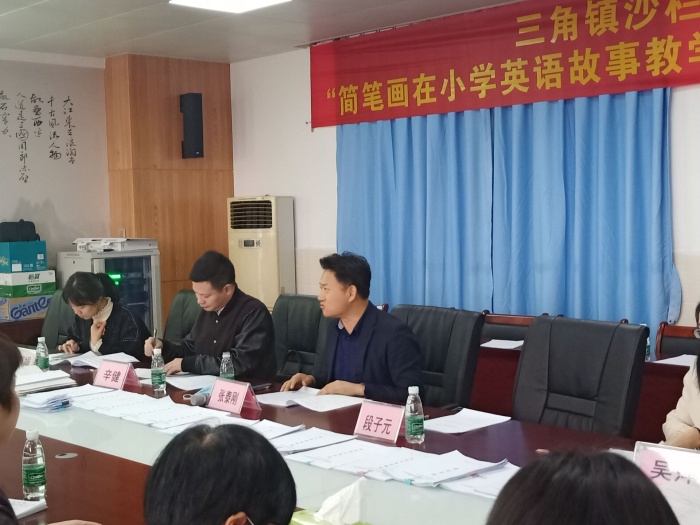 2020年12月25日下午,三角鎮沙欄小學英語市級立項課題“簡筆畫在小學英語故事教學中的應用研究”中期檢查報告會,在沙欄小學謙和樓五樓會議室順利舉行。中山市教研室張泰剛老師、辛鍵老師、何娟老師,三角鎮教育事務中心段子元主任、英語教研員吳萍老師蒞臨會場。沙欄小學崔煥英校長、黎文輝副校長、黃桂容主任及全體課題組成員參加了此次會議,此外,與會人員還有三角鎮各兄弟學校的骨干教師代表。