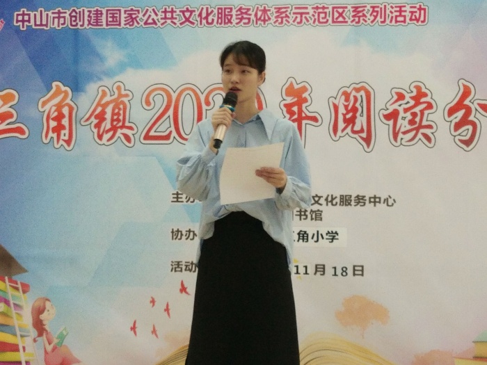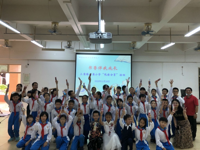 為創(chuàng)建國家公共文化服務(wù)體系示范區(qū),深入實(shí)施素質(zhì)教育,創(chuàng)建良好校園文化,營造濃郁讀書氛圍,由三角鎮(zhèn)宣傳文化服務(wù)中心、三角鎮(zhèn)圖書館主辦,三角鎮(zhèn)三角小學(xué)協(xié)辦的主題為“書香伴我成長”悅讀分享活動(dòng),于2020年11月18日下午兩點(diǎn)在三角小學(xué)階梯教室舉行。本次活動(dòng)由少先隊(duì)大隊(duì)輔導(dǎo)員廖樂詩老師及六(3)班趙文熙同學(xué)主持。三角鎮(zhèn)圖書館館長林贊昌、三角小學(xué)王輝副校長、陳寶瑩主任、楊穗珊副主任以及三角小學(xué)部分師生參加了此次活動(dòng)。