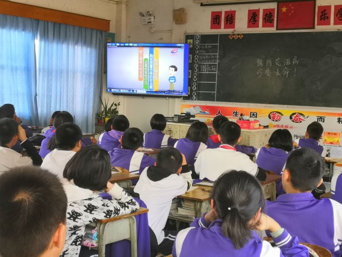 課堂上班主任為了引起學生對艾滋病的高度警惕,提高學生了解艾滋病的興趣,授課過程中還采取互動形式,著重講解了目前艾滋病流行現狀及嚴峻的疫情防控概況、社會影響等知識,并詳細介紹了青少年學生感染艾滋病高危風險因素及艾滋病預防的主要做法。
