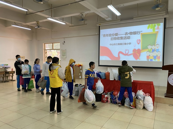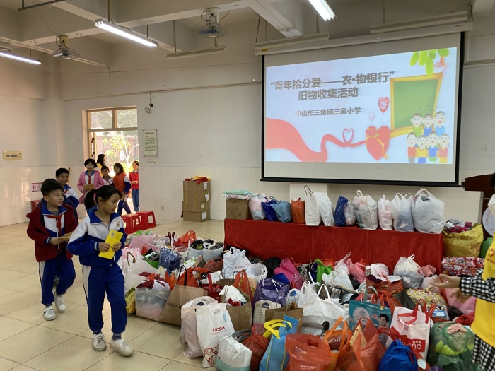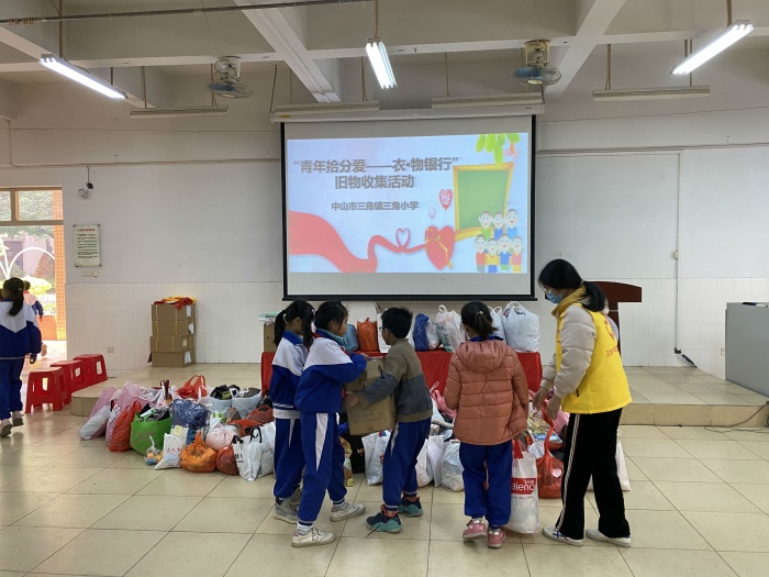 為積極響應中山市少工委倡議,弘揚愛心傳播精神,提高垃圾分類、舊物化寶的環保意識、生態意識,引領廣大青少年做力所能及的環保行動,1月6日下午,三角小學組織開展“青年拾分愛——衣?物銀行”舊物收集活動,為困難人群送上溫暖的問候。