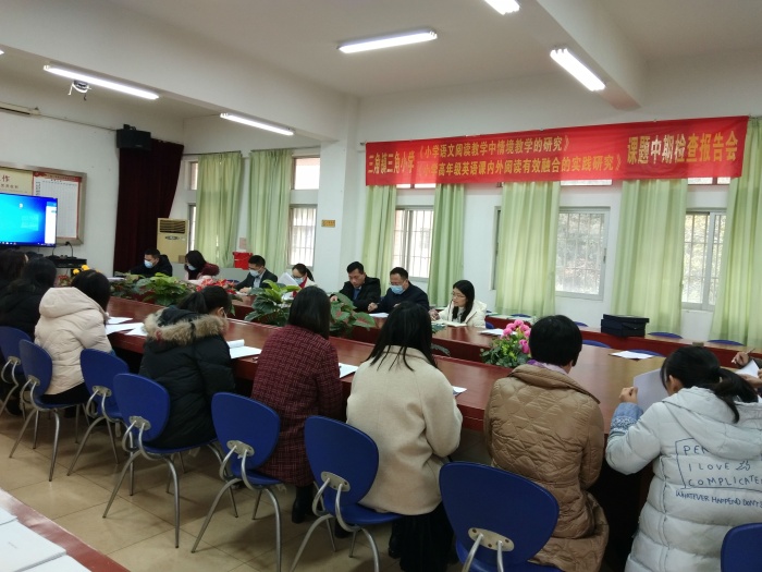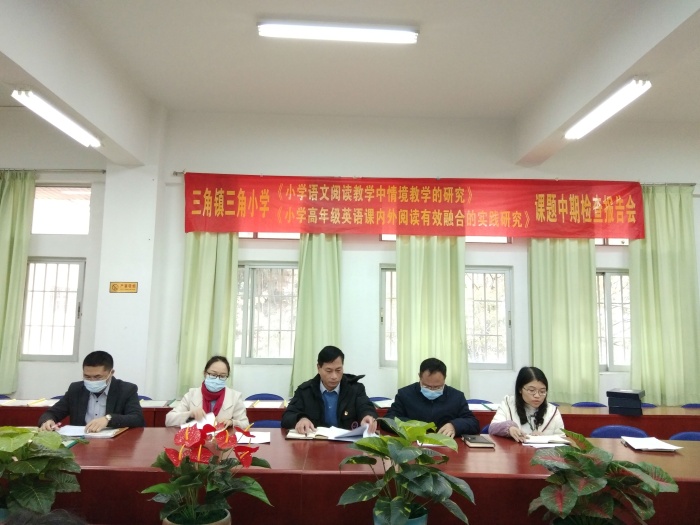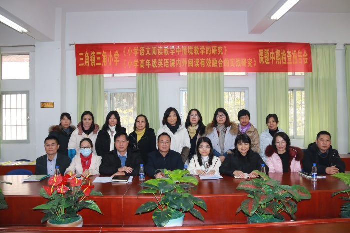冬日是結蕾的季節,更是充滿期待的時分。1月8日上午,三角小學鎮級課題“小學語文閱讀教學中情境教學的研究”和“小學高年級英語課內外閱讀有效融合的實踐研究”中期報告會在三角鎮三角小學會議室舉行,三角鎮教育和體育事務中心梁文副主任和吳萍老師蒞臨指導,陳見洪校長、王輝副校長等行政,以及課題組全體成員參加了會議。