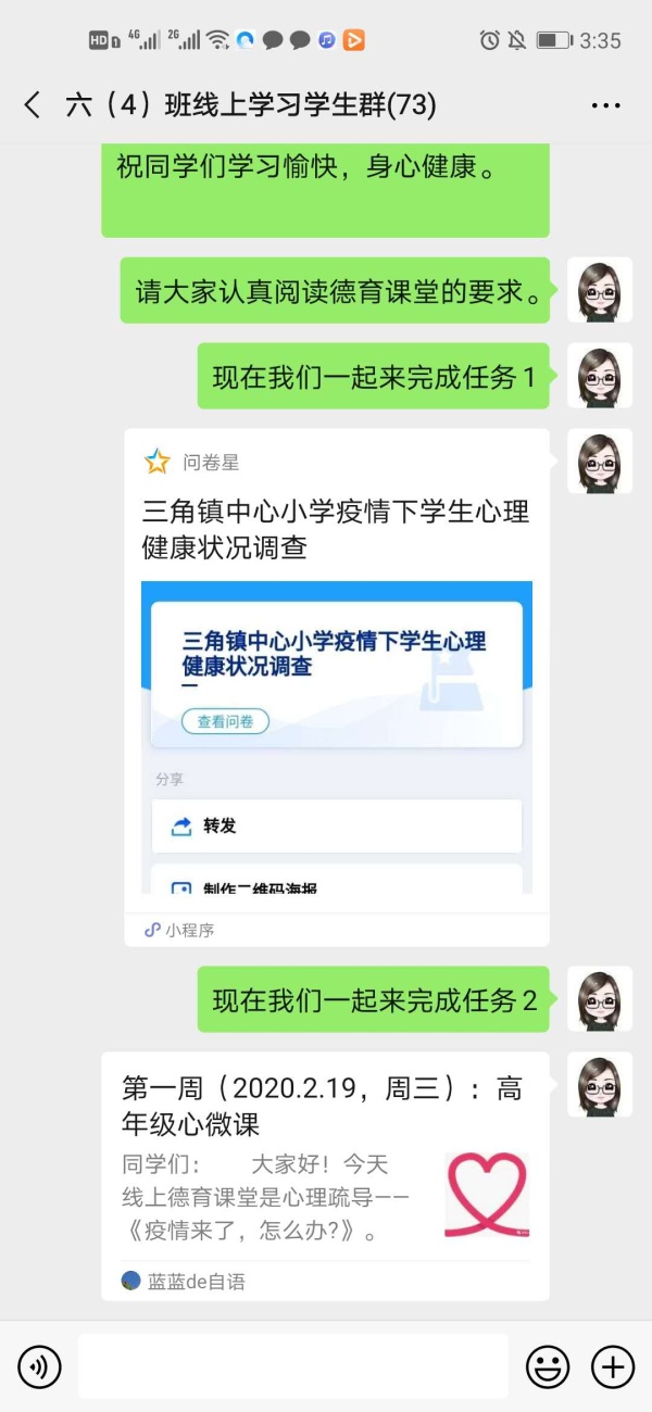 根據調查,德育處有針對性地開展心理教育,以真正解決學生的心靈困惑。德育處計劃每周為全校開展一次心理疏導微課堂,心理老師精心準備微課,內容分低年級和高年級,符合學生的身心特點。通過公眾號推送微課,普及學生所需的心理健康知識,同時心理老師通過公眾號的留言功能與學生進行互動,及時解決學生心中的煩惱,收到學生熱烈的反應。