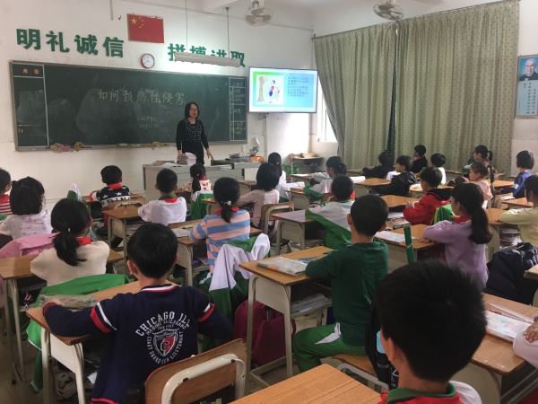本次活動由學校德育處統籌安排,各班主任按照班級情況有計劃地開展。班會課中,教師用圖文并茂的PPT課件,開展觀看視頻、學生討論、案例分析等靈活多樣的課堂教學,引導學生懂得了身體的隱身部位、什么是性侵、性侵的主要形式以及如何處理性侵害等,最后還通過安全三部曲、安全小博士、安全歌的形式提高了同學們的安全防范意識,同時讓學生掌握了青春期男女生正確交往的方式,樹立正確的人生態度,自覺抵制性侵害,大大增強了學生的自我保護意識。