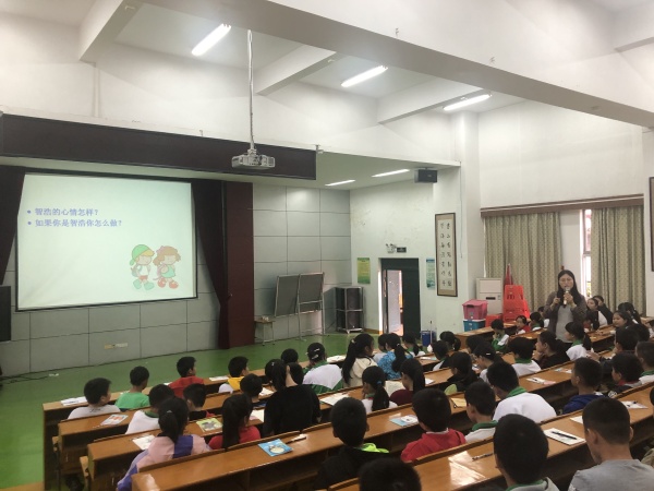 本次生命教育活動根據學生的身心特點分年級進行。一至五年級的生命教育由各班班主任利用班會課進行,六年級全體學生則由心理老師藍老師負責,以講座的方式進行。班會課上,班主任們利用繪本、游戲、視頻的方式講述生命的來之不易,并且展示了近期來同學們在學校的活動照片,勾起學生們對美好生活的回憶,激發學生的熱愛生命的情感。班會課上,同學們都非常認真投入。