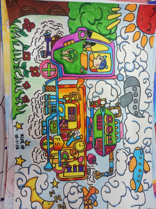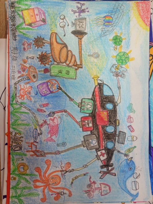 本次活動的主要參賽學生是三、四年級,圍繞“科技創新、節能環保”,學生展開了豐富的想象,活動中,同學們通過對未來科學發展的暢想和展望,用手中的畫筆描繪著科學的畫卷,利用畫面設計、色彩處理、繪畫技巧等繪畫形式表現出未來人類生產、生活情景,熏陶了學生科學思想、培養了學生的想象力,提高了學生繪畫水平。本次活動共收集作品61幅,在上交作品中,周子楊同學的《海底垃圾回收潛艇》、劉曉玲同學的《環保車》等11同學的作品貼合主題,被評為一等獎作品。楊筱羿、何雨涵等13同學的作品獲得二等獎,謝雅琳、李楠曦等37學生作品獲得三等獎。
