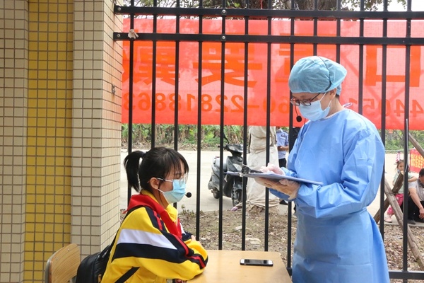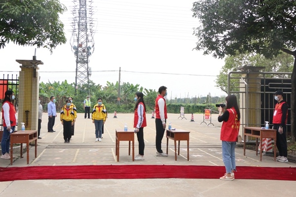 上午10點30分,演練正式開始。學校開放大門,由老師扮演的學生按照地面的1米距離標識保持間距,有序入校。校園門口設置了4條檢測通道,每個通道配備1名老師進行體溫檢測和消毒。體溫檢測正常的學生進入教室, 一旦發現有體溫高于37.30C的師生,立即將其轉移至觀察室,重測體溫,做好記錄并第-時間上報值日行政,同時聯系班主任和家長。