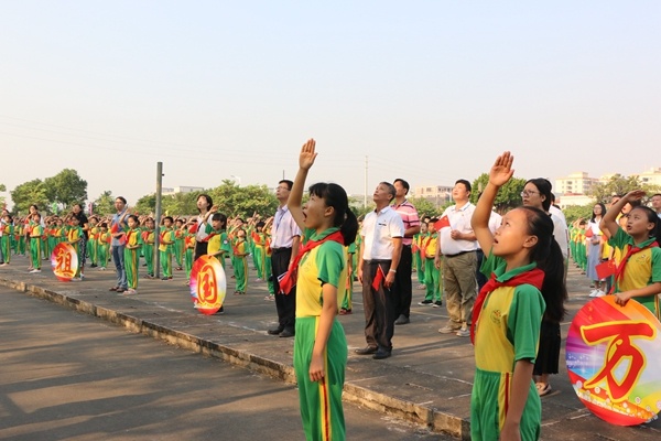 然后由莫文杰校長致辭,莫校長勉勵同學(xué)們一定要牢記國家主席習(xí)爺爺?shù)膰谕校眯膶W(xué)習(xí)和踐行24字社會主義核心價值觀,胸懷祖國,勤奮學(xué)習(xí),努力掌握現(xiàn)代科學(xué)技術(shù),爭做有理想,有道德,有文化,有紀律的四有新人,爭做新時代的好少年,一定要繼承和發(fā)揚自強不息的民族精神,奮力拼搏,力爭用自己的激情、汗水和辛勞,把偉大的祖國建設(shè)得更加美好!衷心祝愿我們的祖國更加繁榮昌盛,祝愿全國人民永遠幸福安康!