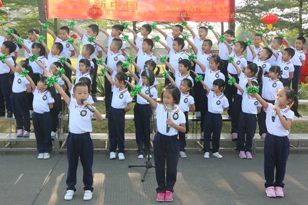 接著,由一(1)班的小同學(xué)帶來朗誦《大?!罚磉_了莘莘學(xué)子真切的愛國心;五(1)班同學(xué)帶來合唱歌曲《雨花石》,同學(xué)們個個聲情并茂,動聽悠揚的旋律配上輕快的動作,余音繞梁、歌聲回蕩,唱出了對祖國母親最誠摯的祝福。