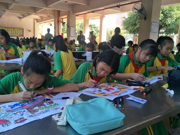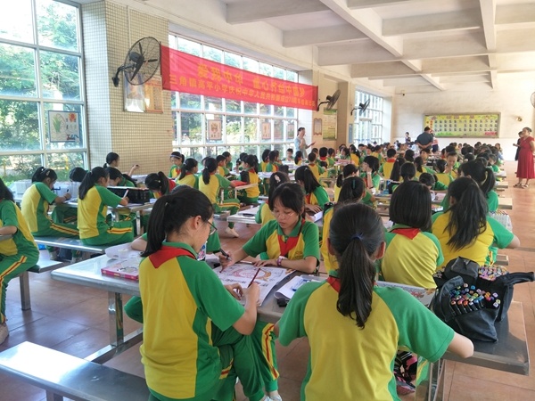 本次活動(dòng)由1—6年級(jí)每班5名學(xué)生齊聚一樓大堂學(xué)生就餐處進(jìn)行現(xiàn)場(chǎng)繪畫?;顒?dòng)現(xiàn)場(chǎng),先由德育處李姚清主任宣布此次繪畫比賽的要求和規(guī)則,而學(xué)生們拿出早已準(zhǔn)備好的美術(shù)工具端正地坐在座位上。比賽剛開始,學(xué)生們根據(jù)主題的要求,一個(gè)個(gè)沉默不語(yǔ)地在認(rèn)真地構(gòu)思,在將近一個(gè)半小時(shí)的繪畫過程中,他們拿起手中的畫筆奮筆疾畫,經(jīng)歷構(gòu)圖、勾線、填色等步驟,勾勒出一幅幅色彩明麗、充滿童真的圖畫,這些精彩作品的背后都飽含著學(xué)生對(duì)祖國(guó)深切的情感。最后,評(píng)委們通過客觀公正的評(píng)定,學(xué)生的作品分年級(jí)分別評(píng)出了一等獎(jiǎng)6名,二等獎(jiǎng)8名,三等獎(jiǎng)若干名,獲獎(jiǎng)作品統(tǒng)一在學(xué)校展板展出。