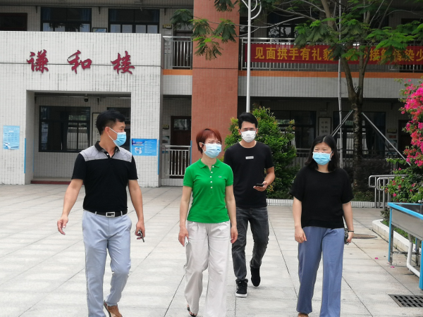 李銘霞委員一行認真聽取吳博事校長介紹學校疫情防控相關工作情況及校園安全工作,實地察看了學校的校門防控管制、消防安全、掃黃打非宣傳等工作的落實情況,對學校返校復學疫情防控及校園安全工作提出要求。